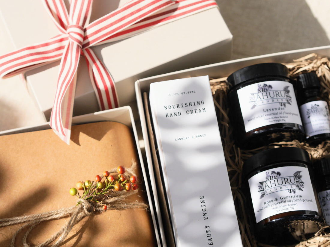 If you are gifting to someone that prefers a variety of scents for different rooms at home, you can choose a Large Candle Gift Box, which includes 2 small candles, 2 essential oils, and 1 Beauty Engine hand cream. You can customize your own scents in the gift box too!Â